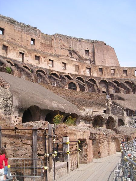 Uvnitř Kolosea - mělo 80 obloukových vchodů, které umožňovaly přístup 55.000 divaků! Chodby Kolosea byly konstruovány tak aby početné davy se dostaly na svá místa do 10ti minut