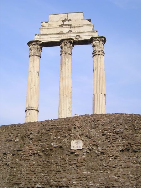 Chrám Kastora a Poluka - základy z 5 stol př. n.l., sloupy které jsou vidět jsou z roku 6 n.l.