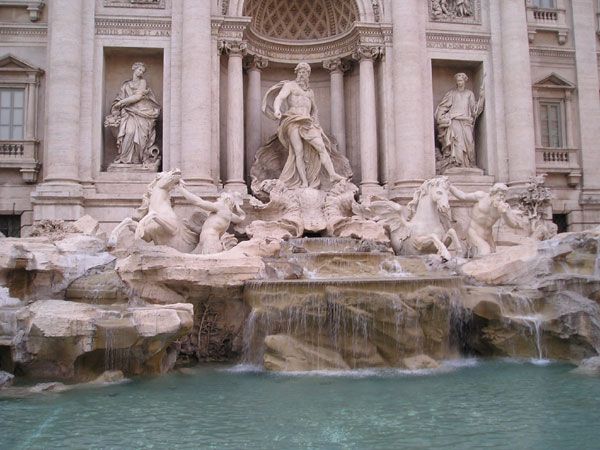 Fontana Trevi - nepopulárnější a největší římská fontána z roku 1762 - Neptun se dvěmi Tritony - detail
