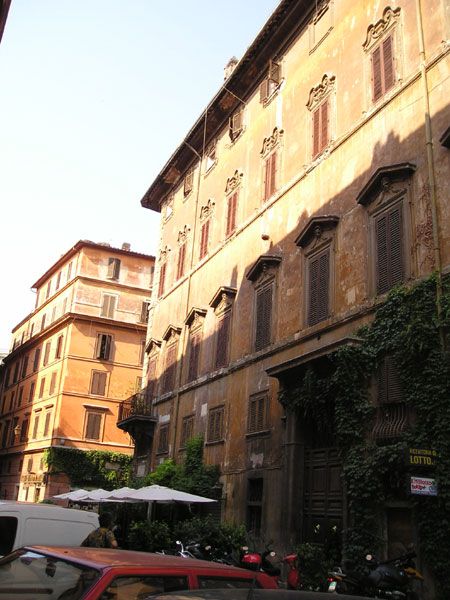 Jedna z uliček v okolí Piazza Navona - speciální donášková služba místních babiček :-)