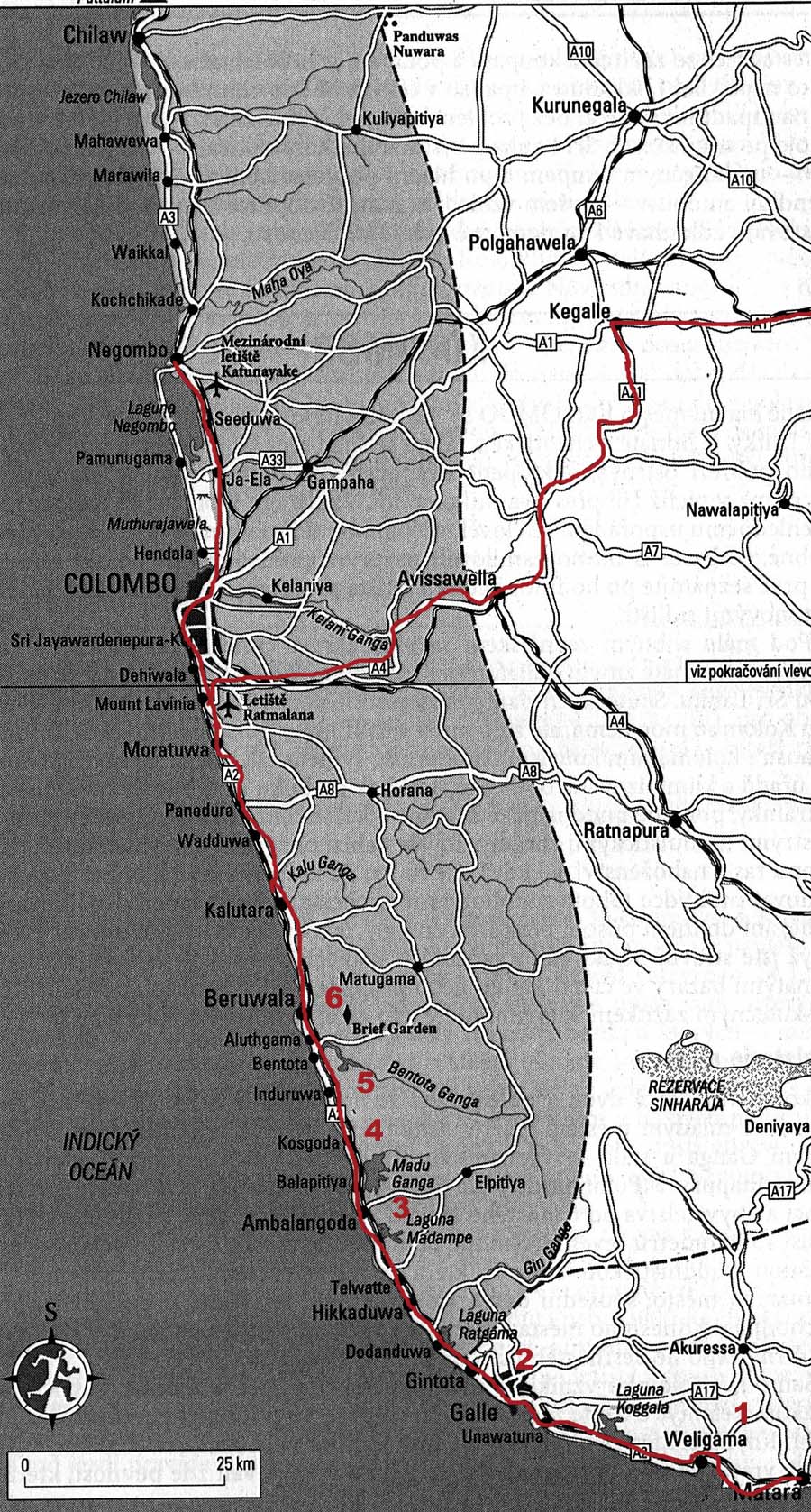 1. Unawatuna - Rybáři na tyčích 2. Galle pevnost 3.Ambalogonda - škola 4. Želvičky v Kosgodě 5. Induruwa 6. Nákupy v Aluthgamě